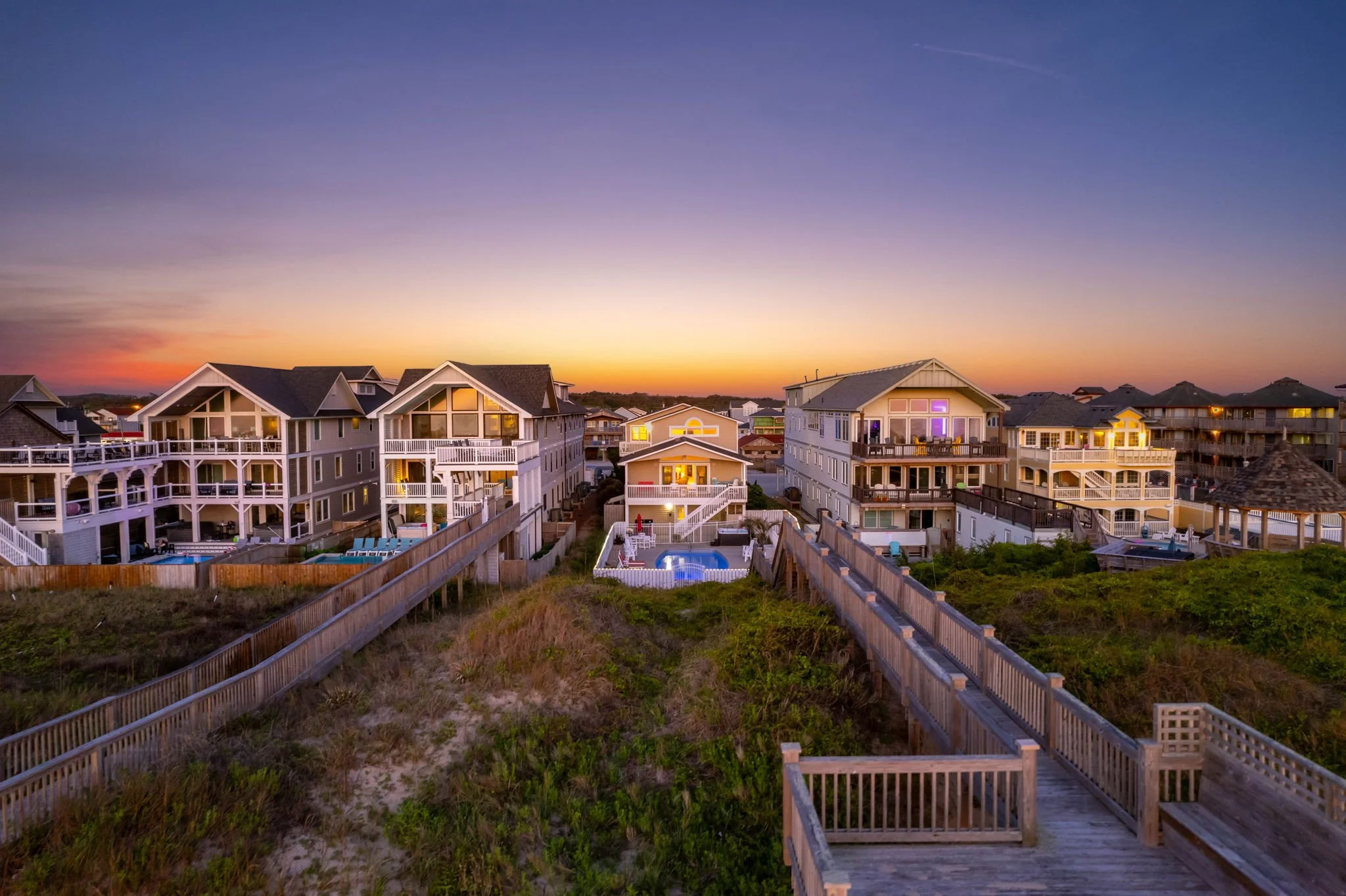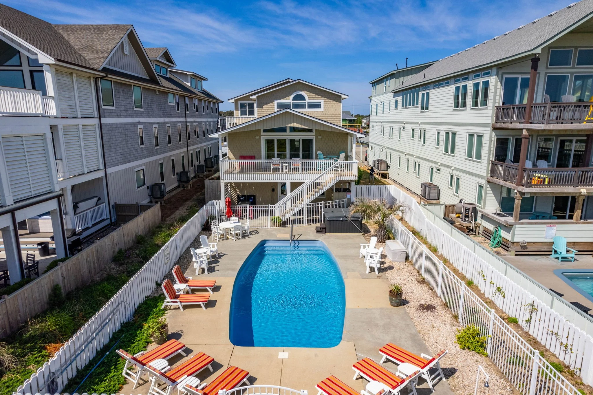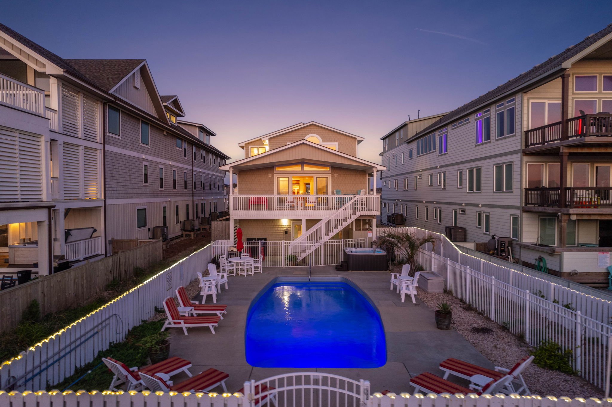From multiple decks with Atlantic Ocean views to a backyard playground with a heated 14x29 saltwater pool, hot tub, and dune-top lounge, this OBX oceanfront home with pool was designed for memory-making. The ground level offers a huge lounge with wet bar, rec room, and pool table — plus three guest bedrooms perfectly set up for fun-filled evenings. Enjoy direct access to the pool, fenced dog run, and private dune walkover.