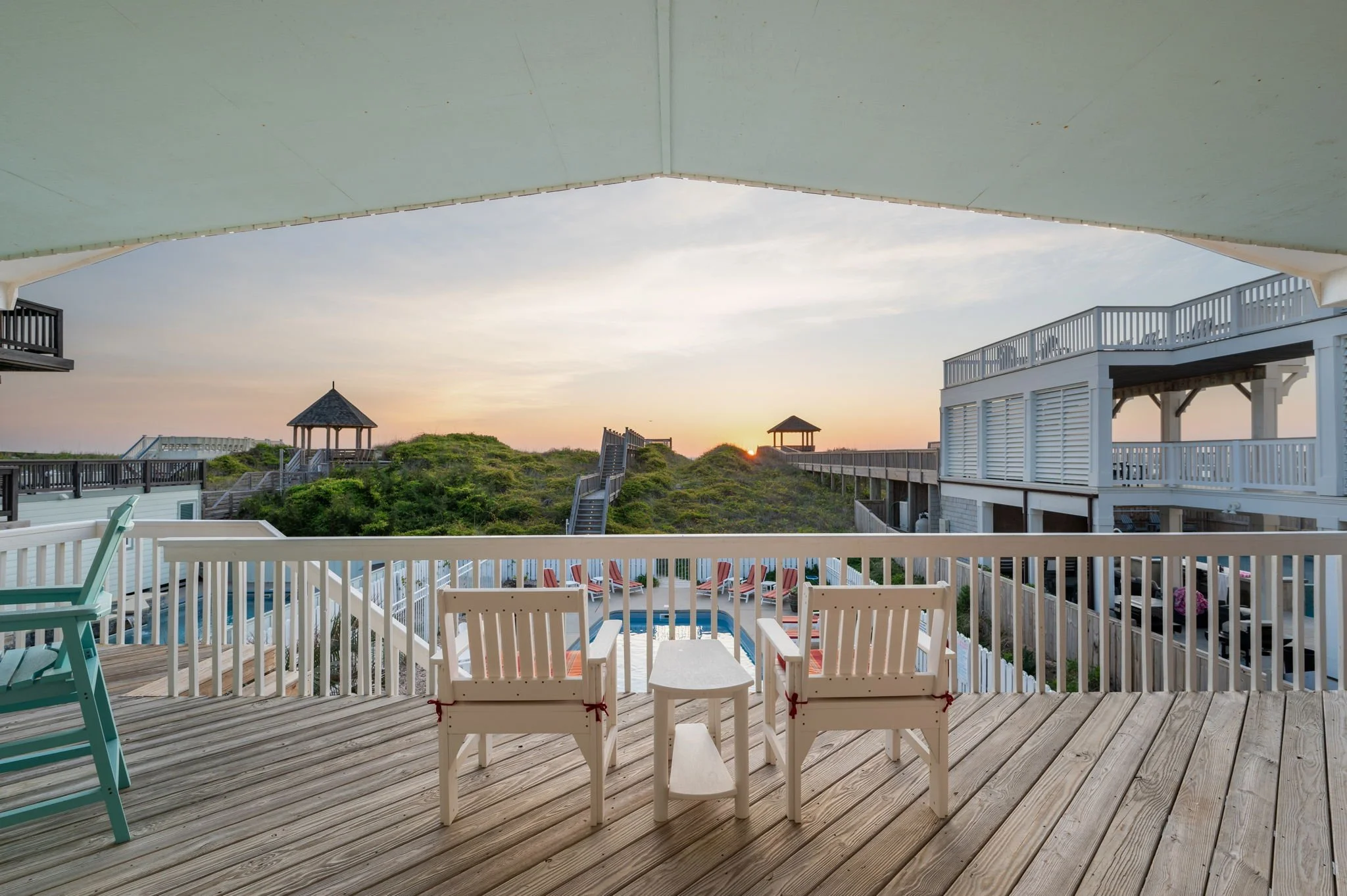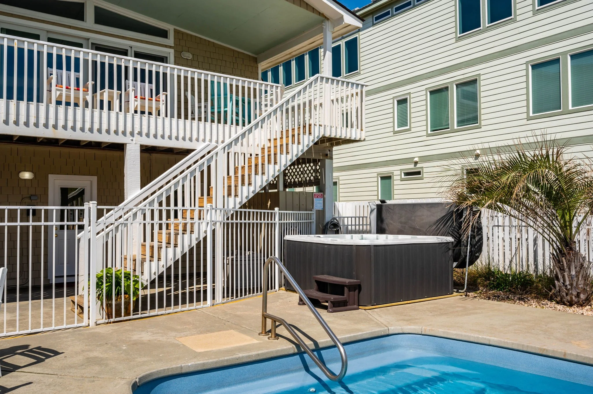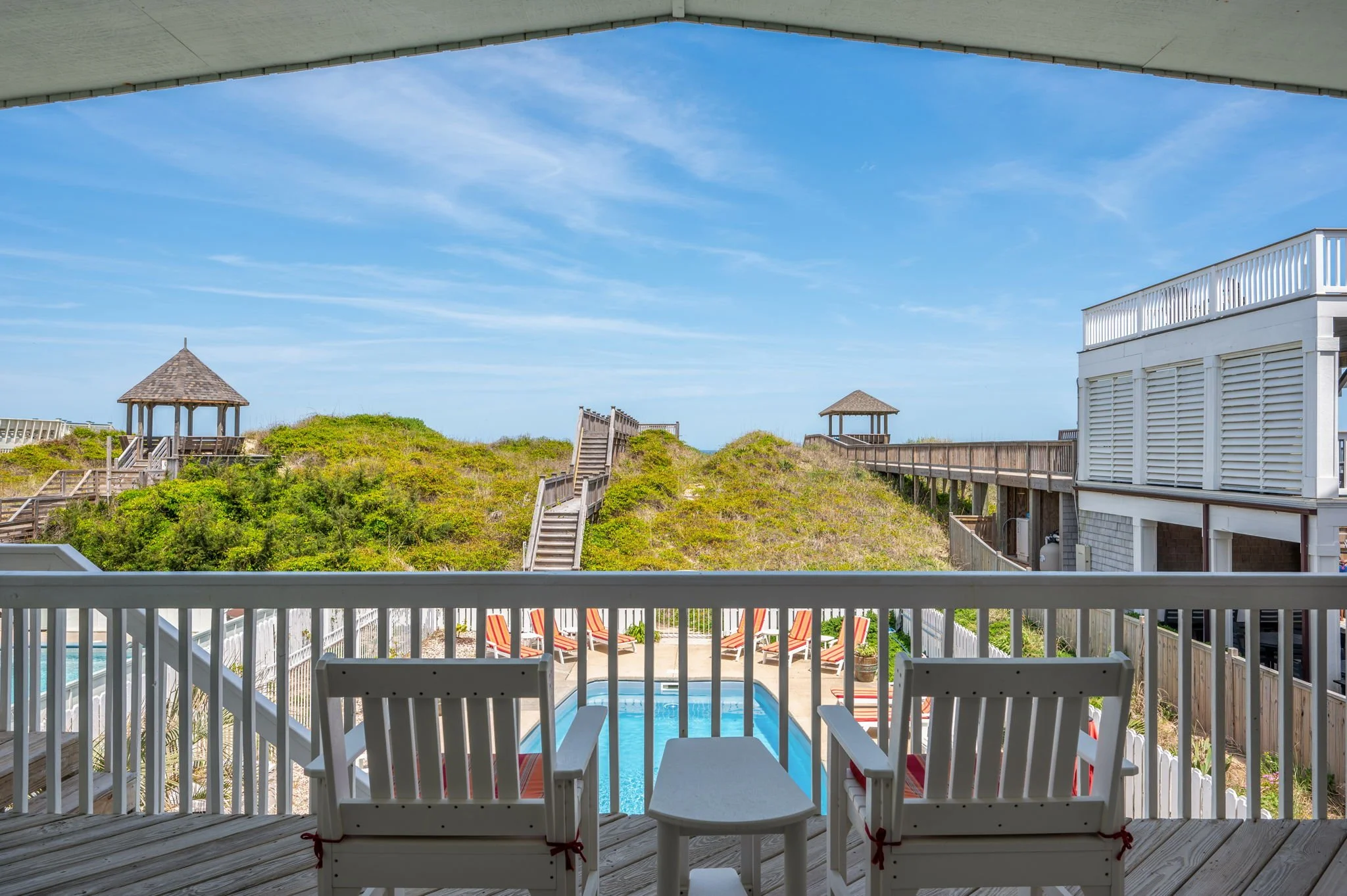 From multiple decks with Atlantic Ocean views to a backyard playground with a heated 14x29 saltwater pool, hot tub, and dune-top lounge, this OBX oceanfront home with pool was designed for memory-making. The ground level offers a huge lounge with wet bar, rec room, and pool table — plus three guest bedrooms perfectly set up for fun-filled evenings. Enjoy direct access to the pool, fenced dog run, and private dune walkover.